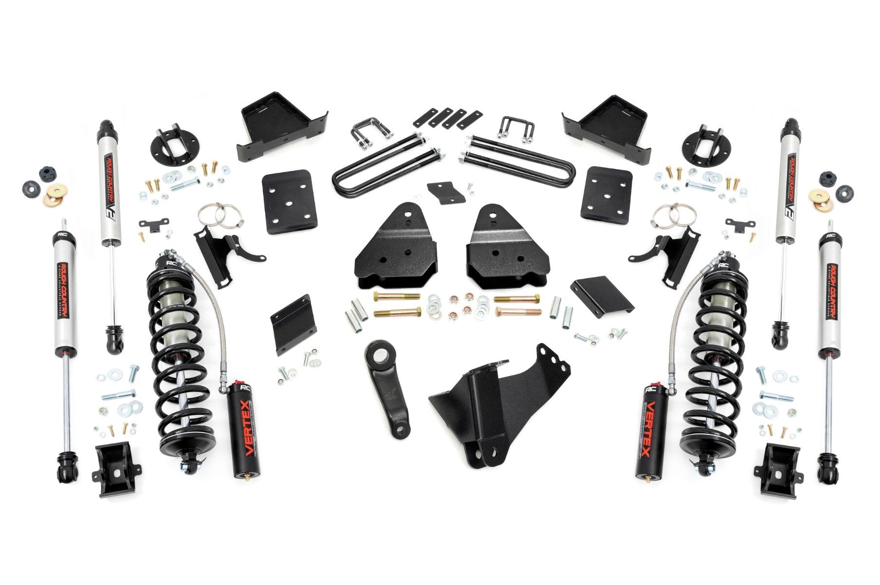 Explore New Heights. Give your third-generation Ford Super Duty superior lift height with Rough Country's 6-inch Coilover Suspension Lift Kit! This all-inclusive kit comes with everything you need for a total transformation of your truck. Run up to 37in tires while preserving the smooth, factory ride quality with this impressive upgrade. Durable Components. When changing a vehicle's suspension, the key to preserving ride quality is keeping the geometry of all suspension components as close to their factory angles as possible. Rough Country's new 6-inch Suspension Lift features a set of ultra-durable radius arm drop brackets, precision fit to bolt right into the factory mounts for an easier install and a more factory-like angle. Utilizing this conversion kit you're removing the factory independent coil shock and coil set-up and replacing it with a massive 2.5in piston, nitrogen-charged, 8-stage adjustable Vertex Coilover. Rough Country's Vertex Coilovers feature a monotube design with an external reservoir for increased oil capacity and damping sensitivity. When it comes to investing in a high-end kit, you ll be pleased to find that Rough Country's 2.5in piston design is beefier and offers an impressive 56% greater fluid capacity than the average reservoir shock. Each kit is paired with a monotube shock that provides optimal damping control. Installation. Requiring cutting and drilling to install, an estimated timeframe of 6-10 hours is recommended to complete this full installation. This full kit can be installed at home and can be completed efficiently and quickly! Limited Lifetime Replacement Warranty. Rough Country's 6-inch Coilover Suspension Lift Kit is backed with a limited lifetime replacement warranty towards manufacturer defects. As such, the product is protected from structural and workmanship damage after the date of purchase. With our industry-leading warranty give yourself peace of mind when using Rough Country's Suspension products!